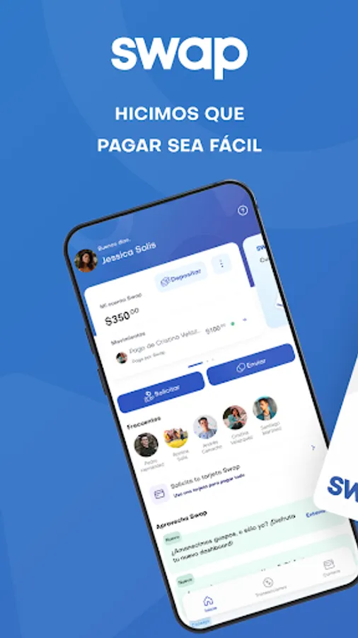 Leave your wallet at home. With Swap®, we made paying easy. You can send money to anyone on your contact list or to any CLABE Interbancaria, even if they don't have Swap, with just your email or cell phone in seconds. It's easy, fast and safe.
