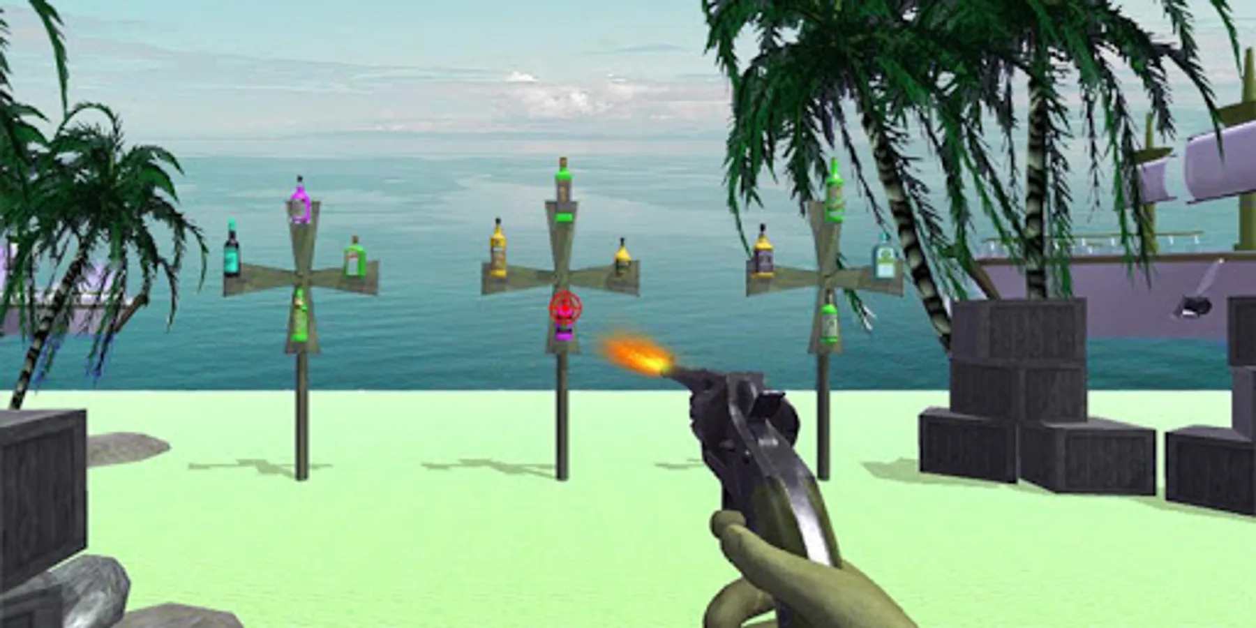 Bottle shoot 3d - shooting challenge is very realistic Bottle shooting game with crystal glass braking sound effects and animation. Test your shooting accuracy and became shooting expert.
