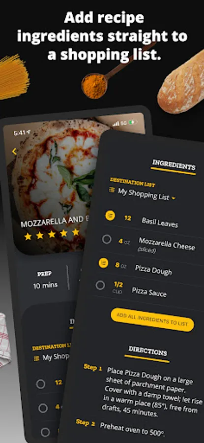★ When you are ready to prepare a meal from a recipe, you can quickly add recipe ingredients to a shopping list that you created earlier.