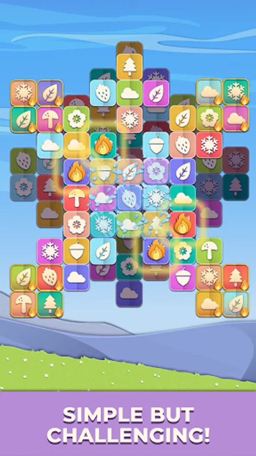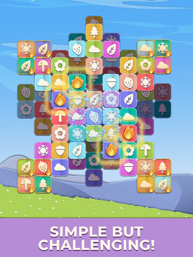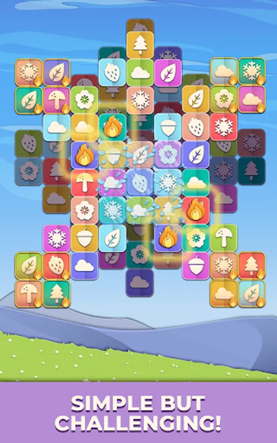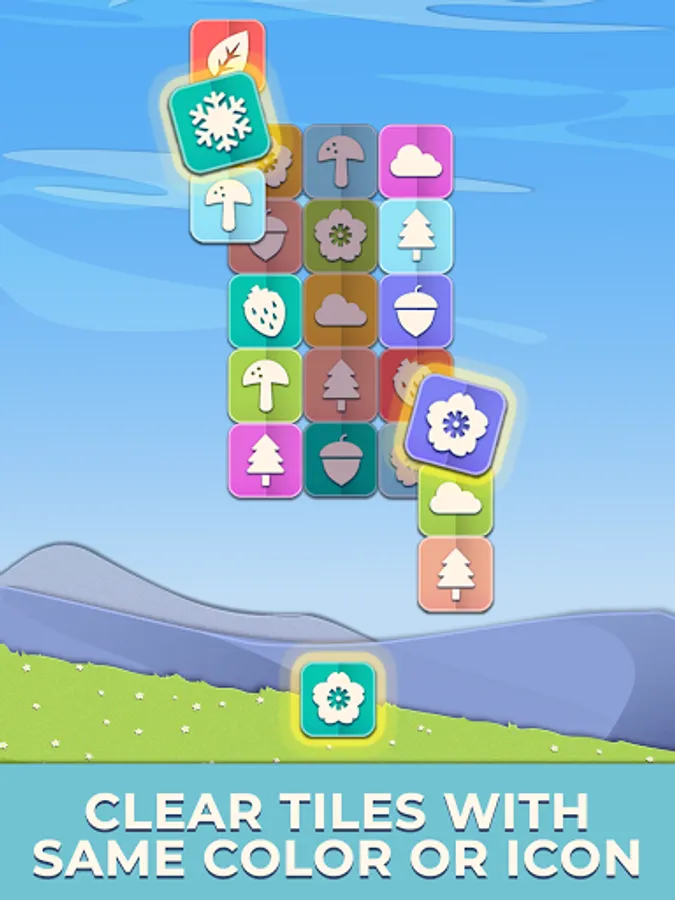 Two Tiles is a new fun take on tile matching puzzles. It's a fresh mix of classic onet, mahjong and tripeaks solitaire. You just need to tap on the tiles if they match either the color or the icon of your current tile. It is easy and relaxing, but also challenging and an excellent way to train your brain. No need to connect or link the tiles, just tap on them. Can you become the tile master? Tile matching is a craft!