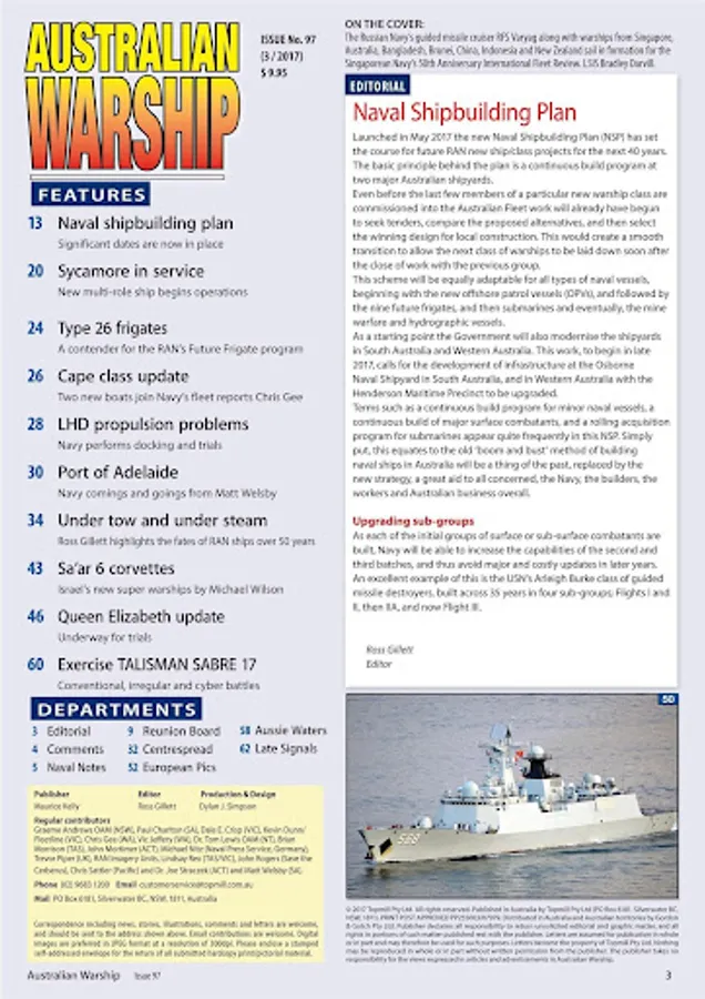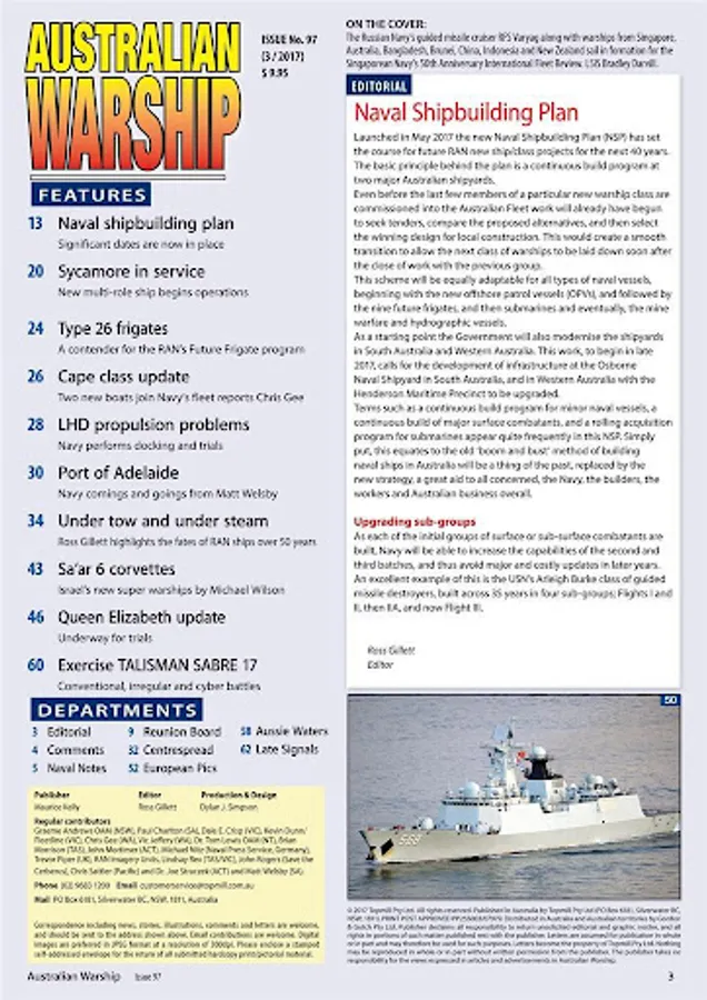 Australia's very own magazine for naval enthusiasts and current and former naval personnel.