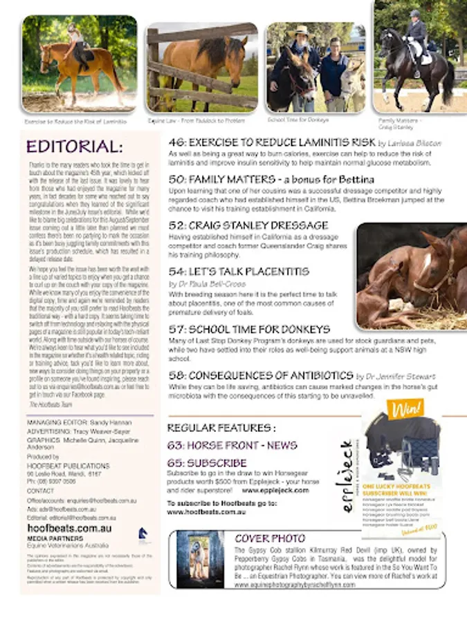 • Subscriber competitions (eligible entries to subscriptions@hoofbeats.com.au)