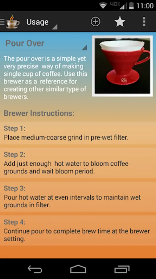 Brewer Usage Notes: Each brewer can be given their own usage notes and steps involved in the brewing process. Include pictures in the details of your notes using your camera or taken from a photo gallery.