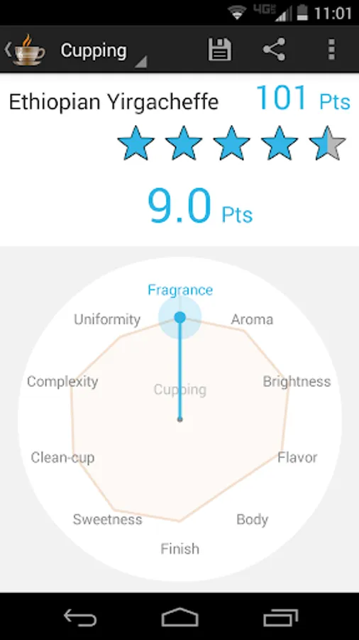 Coffee Rating System: Once you have your coffee recipe perfected, you will want to record the settings for future use. The rating page will be generated with your current settings. All you need to do is add a title and rating scores. Included with the rating system is a cupping score and flavor wheel picker. The interactive custom pickers are intuitive and fun to use. Based on the selections you pick, a detailed coffee description is "automagically" created.