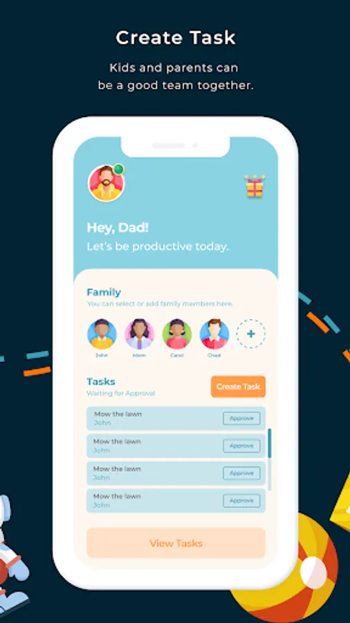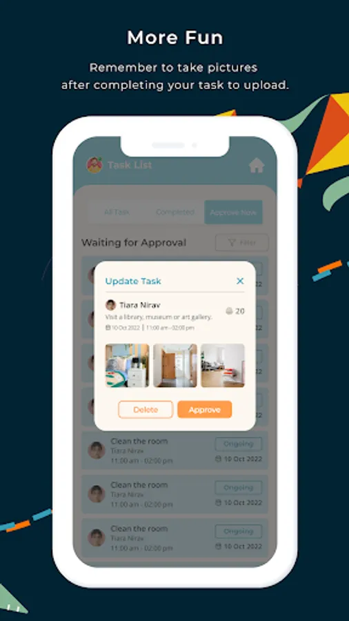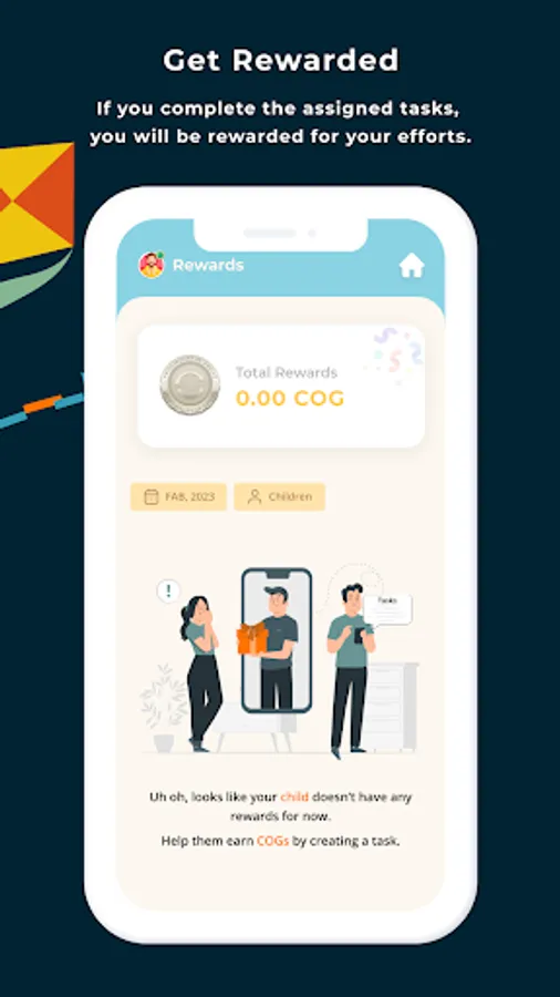 In the App, parents or caregivers, referred to as Guardians, assign tasks to their children, referred to as Kids. Upon completion and approval of the assigned tasks, children are rewarded with Cogs from Cogito Metaverse as their earning!