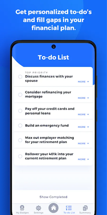 No note-taking, mumbo-jumbo jargon, finance degree or in-person meetings necessary. Your To-Dos live on your To-Do List until you’re ready to tackle 'em. And we’ll remind you what you need to do along the way.