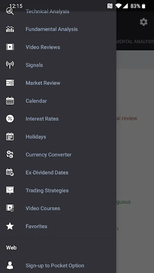 The application is available in Indonesian, Spanish, Portuguese, Thai, English and Russian languages. All materials are provided for the following assets: EUR, USD, GBR, JPY, CHF, CAD, NZD, AUD, Silver, Gold, Brent, Stocks.