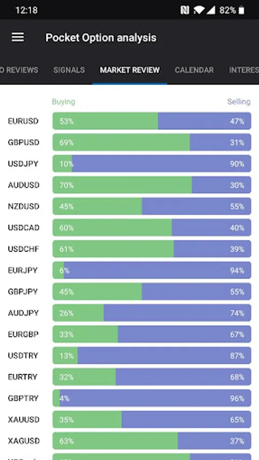 Flexible system of configuration will present the most comfortable and easy to enjoy all the benefits of the program. In addition, the application provides an intuitive and visual guidelines for market trading based on an analysis of the popular Forex indicators. There is an available market's review showing a real-time percentage of buying and selling traders.