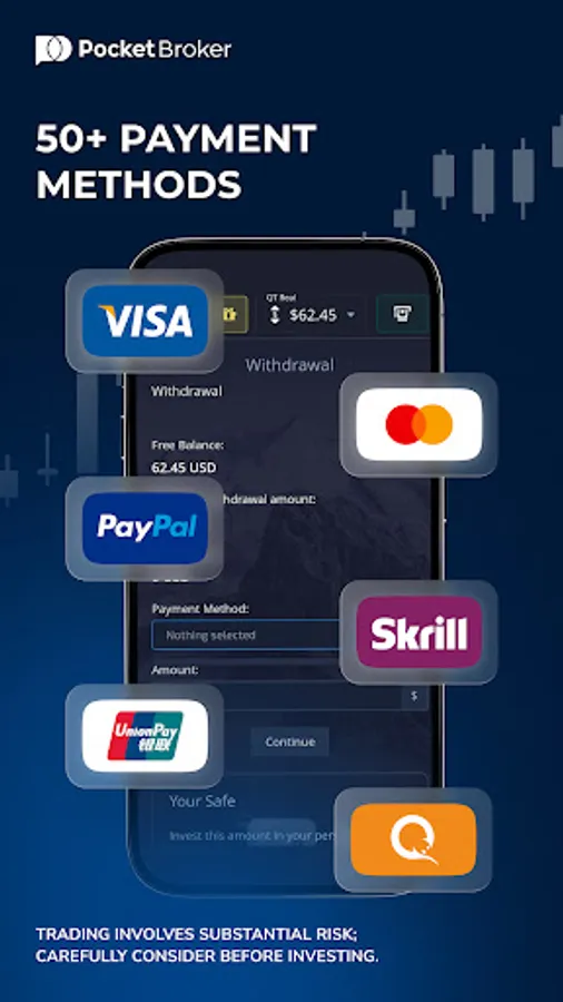 Reveal all the Pocket Broker features with real trading mode. Deposit and withdraw quickly and easily with our wage payment services portfolio. Choose reliable global and local providers that perfectly match your needs.
