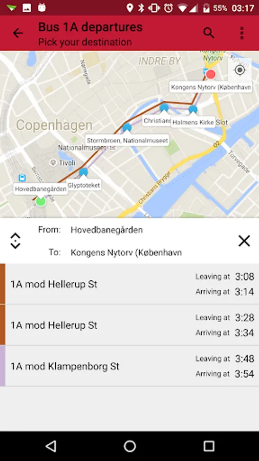View stations as well as all routes departing from them on a map allows you to quickly choose the correct bus or train.