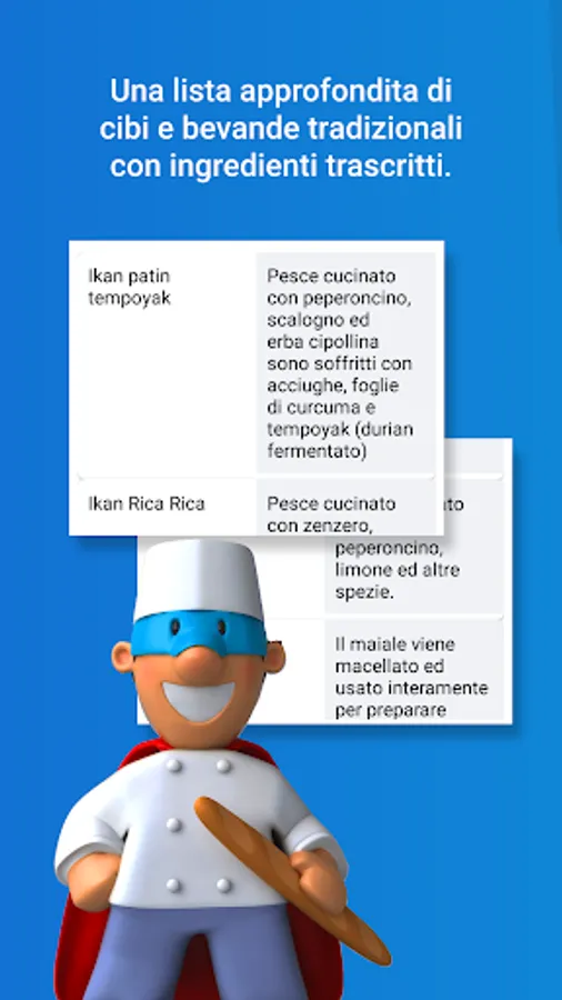 - Section dedicated to Traditional Foods and Drinks, with specific menu-search for the names of the dishes.