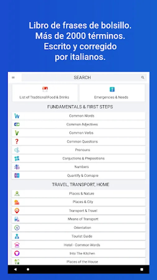 - Unlimited word searches, both in your language and in Italian.