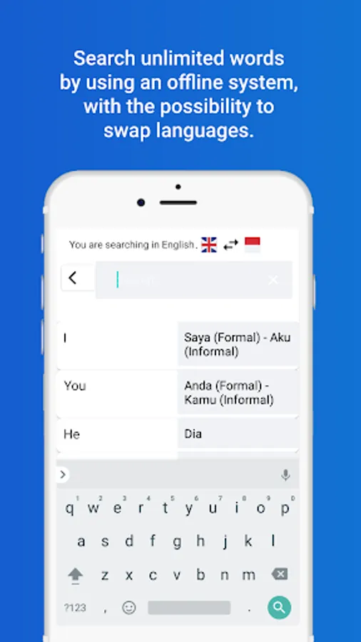 - Unlimited word searches, both from your language and from Bahasa Indonesia