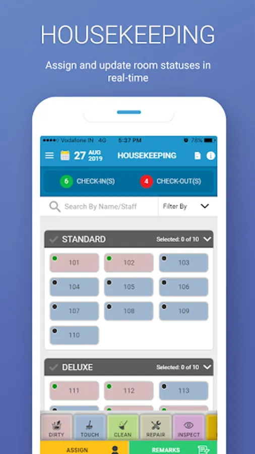 - Easy Room assign, Status change & Task Management in Housekeeping