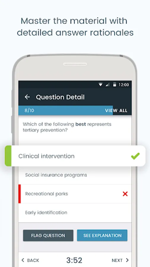 The app utilizes the “spacing effect” to enhance your learning capability. You’ll space out your studying into shorter, more productive study sessions which allow your brain to retain more information. Simply tell the app how many questions you want to take, enable the timer, and filter exam content to create the perfect study experience.