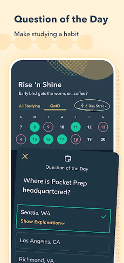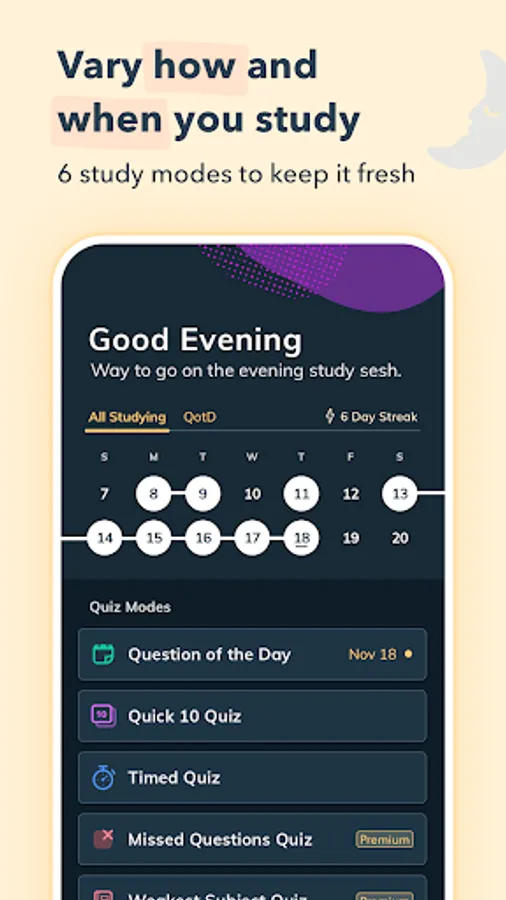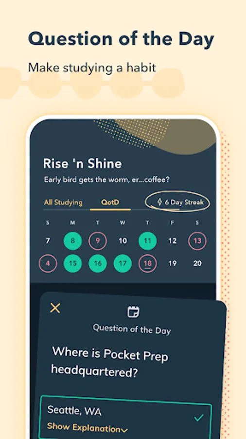 Scientific research shows that studying in short bursts over time is more effective than a handful of long study sessions. Our app is built with this in mind, giving you the power to study from your phone whenever and wherever it’s convenient for you. Easily access practice questions while waiting in line, on public transit, on meal breaks, and more!