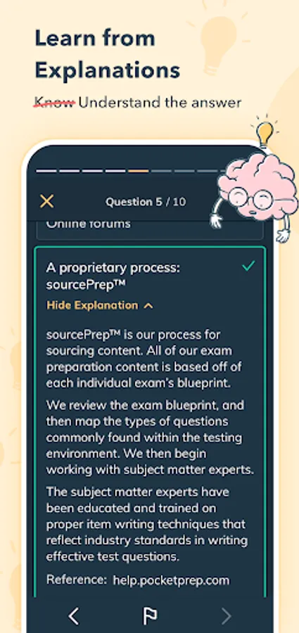 Pocket Prep has been helping people pass their exams since 2011. Our exam prep content is created using subject matter experts to craft fully original practice questions that are directly based off each individual exam blueprint and cover each section of the exam. Our proprietary sourcePrep™ process ensures these experts are trained in writing techniques that reflect current industry testing standards and practices.