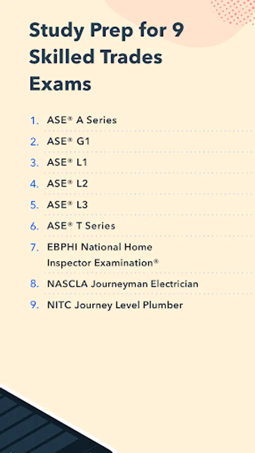 Skilled Trades Pocket Prep gives you access to study prep for 9 different skilled trades exams all in one place, with 200-500 practice questions for each exam.