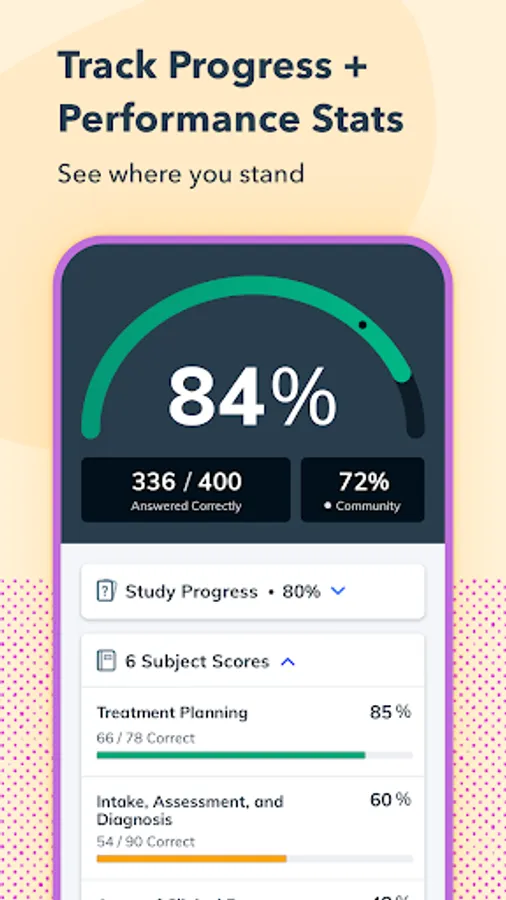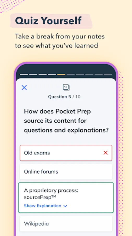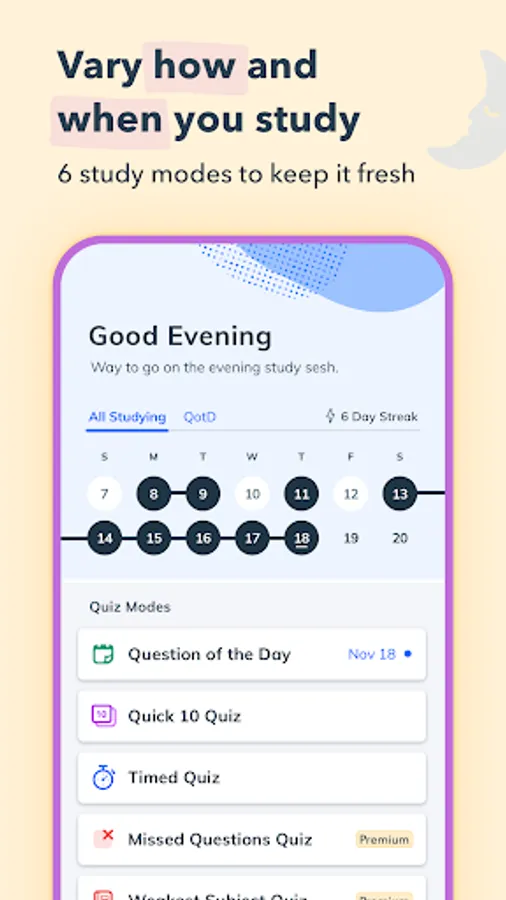 Scientific research shows that studying in short bursts over time is more effective than a handful of long study sessions. Our app is built with this in mind, giving you the power to study from your phone whenever and wherever it's convenient for you. Easily access practice questions while waiting in line, on public transit, on meal breaks, and more!