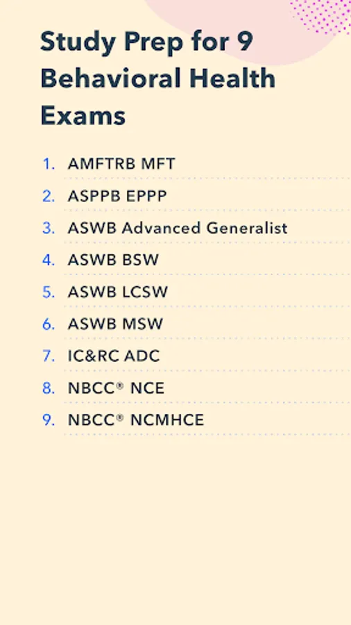 Behavioral Health Pocket Prep gives you access to study prep for 9 different behavioral health exams all in one place, with 500-1200 practice questions for each exam.