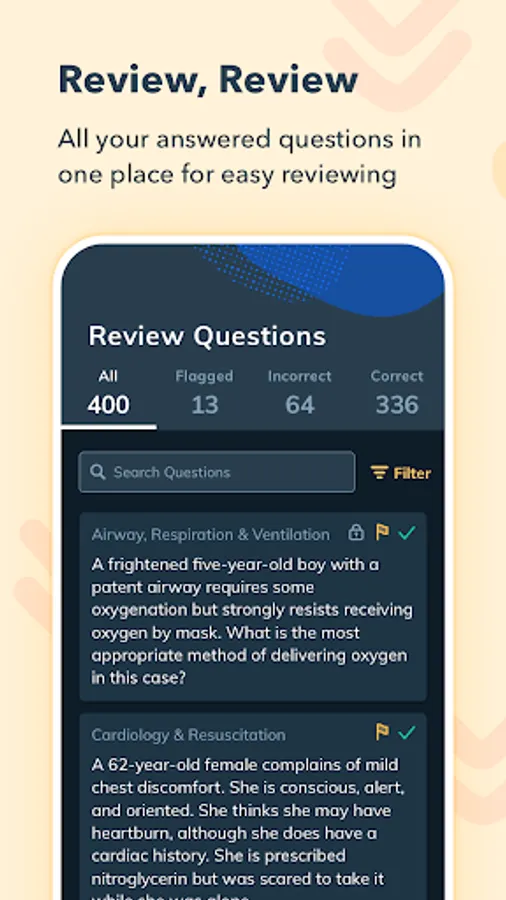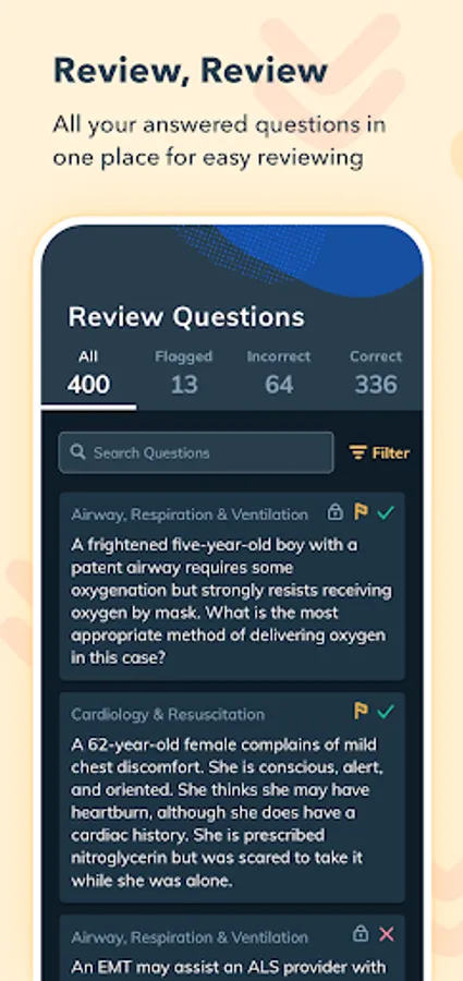 - Sort by flagged or incorrect questions