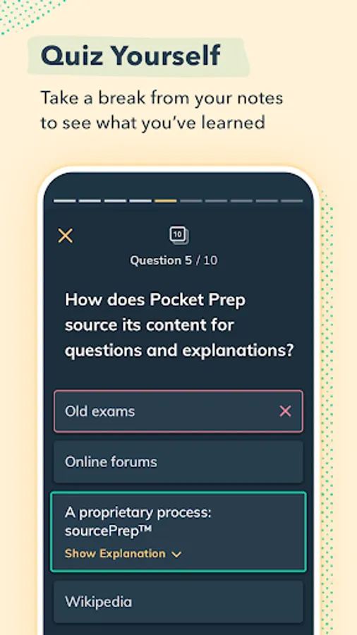 Scientific research shows that studying in short bursts over time is more effective than a handful of long study sessions. Our app is built with this in mind, giving you the power to study from your phone whenever and wherever it's convenient for you. Easily access practice questions while waiting in line, on public transit, on meal breaks, and more!