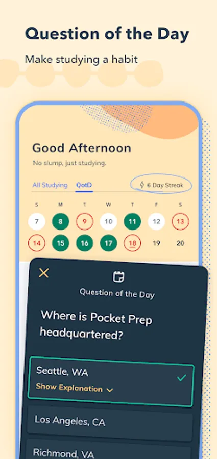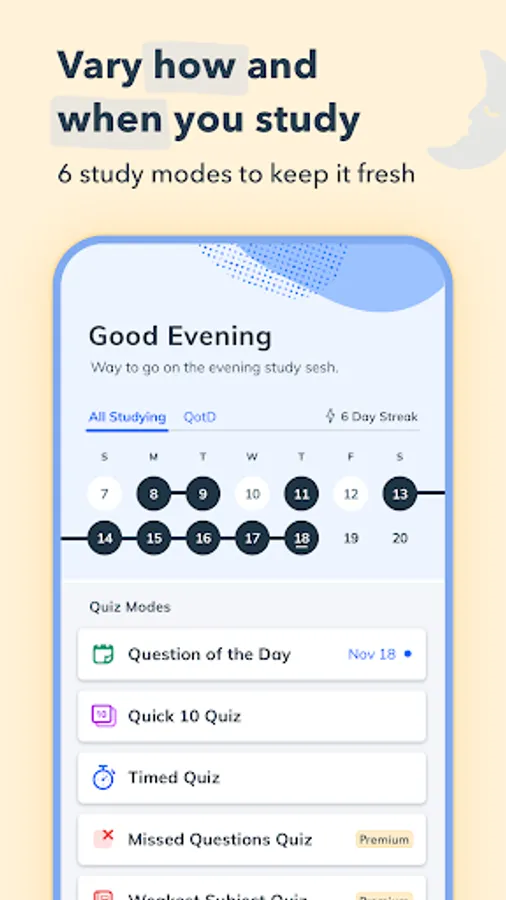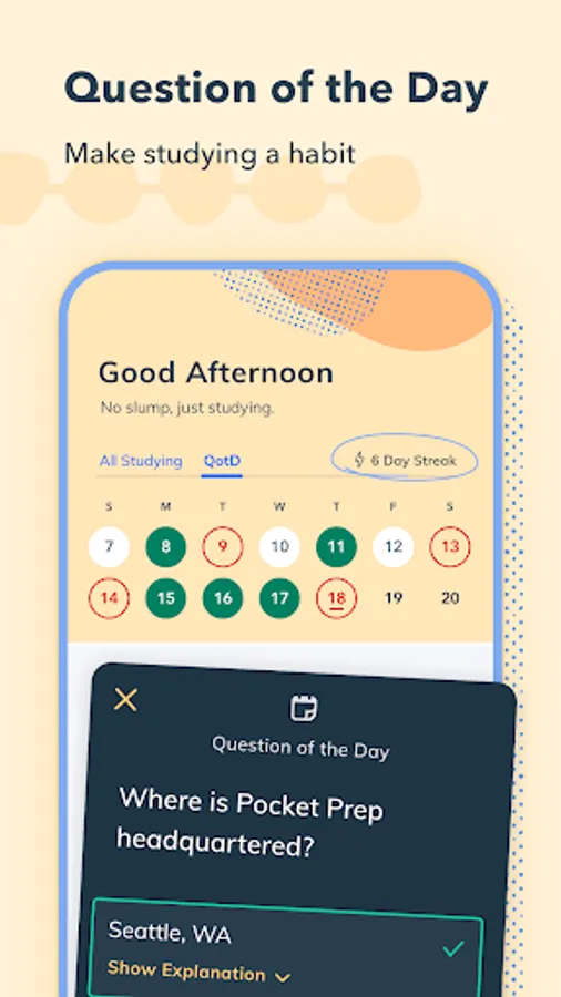 Scientific research shows that studying in short bursts over time is more effective than a handful of long study sessions. Our app is built with this in mind, giving you the power to study from your phone whenever and wherever it's convenient for you. Easily access practice questions while waiting in line, on public transit, on meal breaks, and more!