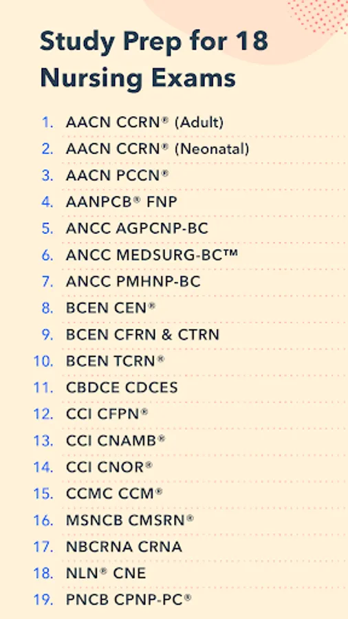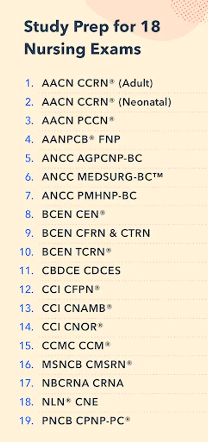 Nursing Pocket Prep gives you access to study prep for 18 different nursing exams all in one place, with 500-1200 practice questions for each exam.