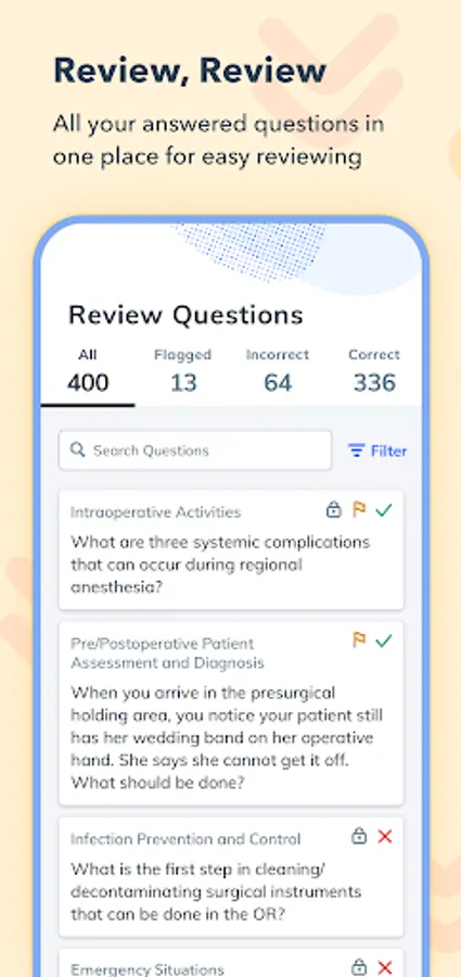 - Sort by flagged or incorrect questions