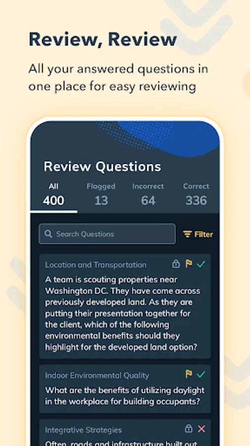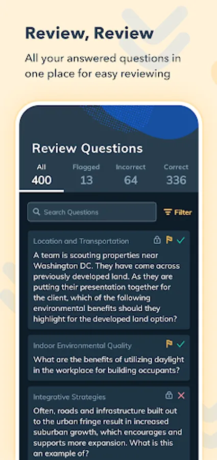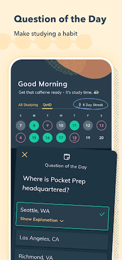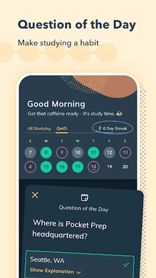 Scientific research shows that studying in short bursts over time is more effective than a handful of long study sessions. Our app is built with this in mind, giving you the power to study from your phone whenever and wherever it's convenient for you. Easily access practice questions while waiting in line, on public transit, on meal breaks, and more!