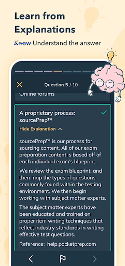 Pocket Prep has been helping people pass their exams since 2011. Our exam prep content is created using subject matter experts to craft fully original practice questions that are directly based off each individual exam blueprint and cover each section of the exam. Our proprietary sourcePrep™ process ensures these experts are trained in writing techniques that reflect current industry testing standards and practices.