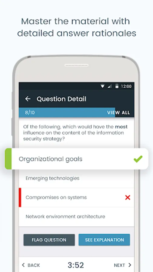 Pocket Prep’s CISM practice test app is a powerful exam simulator that allows you to create customized practice tests with detailed answer explanations for every question. View your results and exam history with just a few taps. Study anywhere at any time without Internet connectivity.
