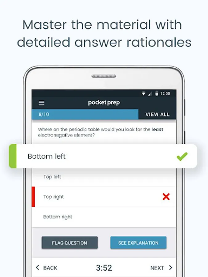 Pocket Prep’s CLEP Chemistry practice test app is a powerful exam simulator that allows you to create customized practice tests with detailed answer explanations for every question. View your results and exam history with just a few taps. Study anywhere, anytime without Internet.
