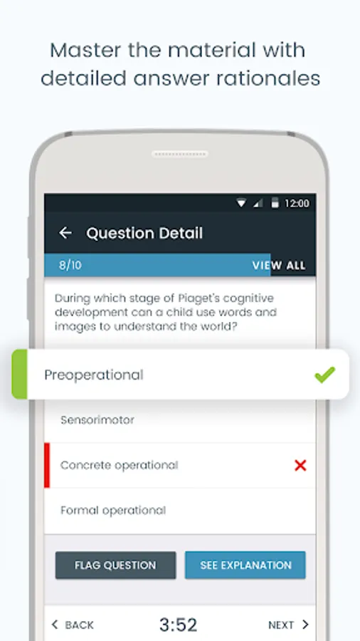The app utilizes the “spacing effect” to enhance your learning capability. You’ll space out your studying into shorter, more productive study sessions which allow your brain to retain more information. Simply tell the app how many questions you want to take, enable the timer, and filter exam content to create the perfect study experience.