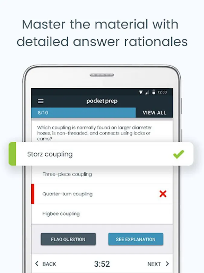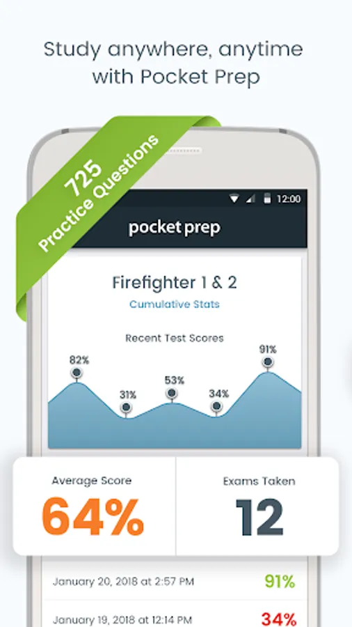 Pocket Prep’s Firefighter practice test app is a powerful exam simulator that allows you to create customized practice tests with detailed answer explanations for every question. View your results and exam history with just a few taps. Study anywhere at any time without Internet.