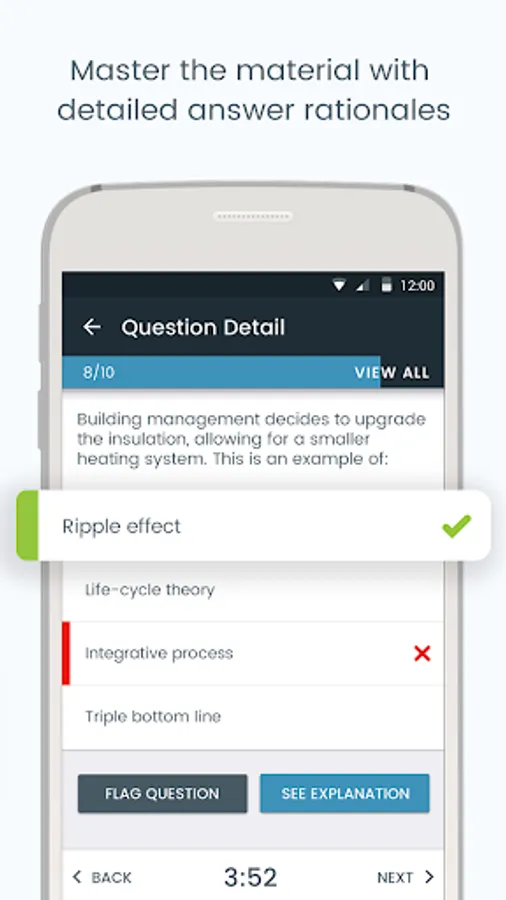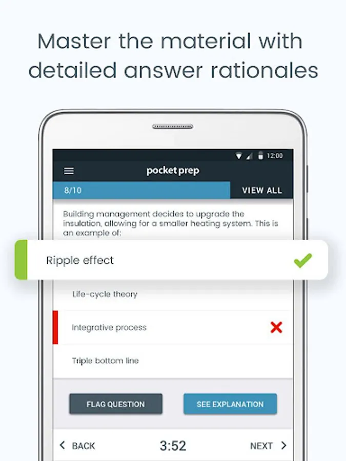 Pocket Prep’s LEED Green Associate V4 practice test app is a powerful exam simulator that allows you to create customized practice tests with detailed answer explanations for every question. View your results and exam history with just a few taps. Study anywhere, anytime without Internet connectivity.