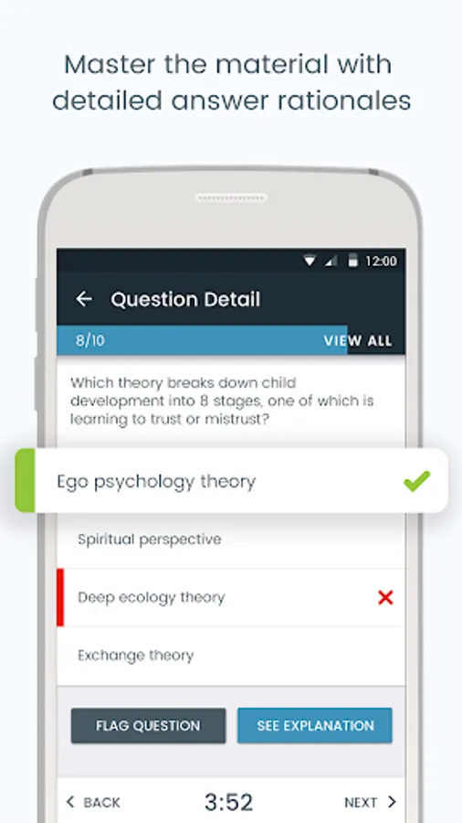 The app utilizes the “spacing effect” to enhance your learning capability. You’ll space out your studying into shorter, more productive study sessions which allow your brain to retain more information. Simply tell the app how many questions you want to take, enable the timer, and filter exam content to create the perfect study experience.