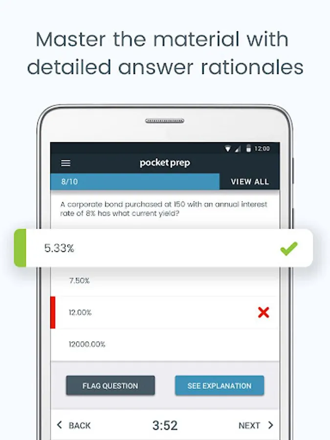 Pocket Prep’s Series 7 practice test app is a powerful exam simulator that allows you to create customized practice tests with detailed answer explanations for every question. View your results and exam history with just a few taps. Study anywhere, anytime without Internet.