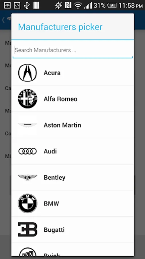* CarG - Car Management App has a simple cars selector dialog to shifting between the cars smoothly if there more than one.