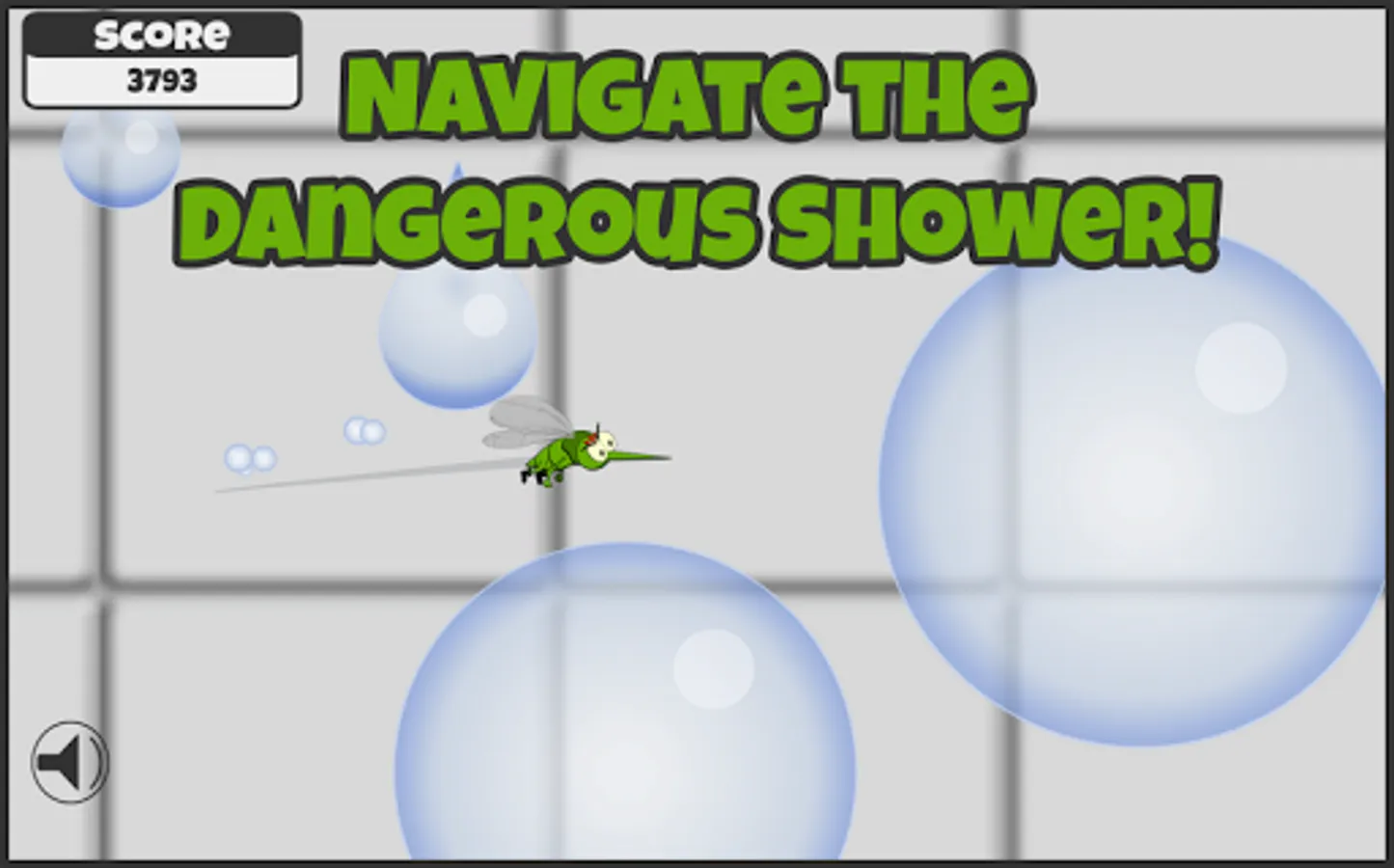 Guide Squito the Mosquito through a shower full of water drops, giant bubbles, and stinky gases! Hone your skills and unlock a full team of squitoes with different abilities to get as far into the shower as you can.