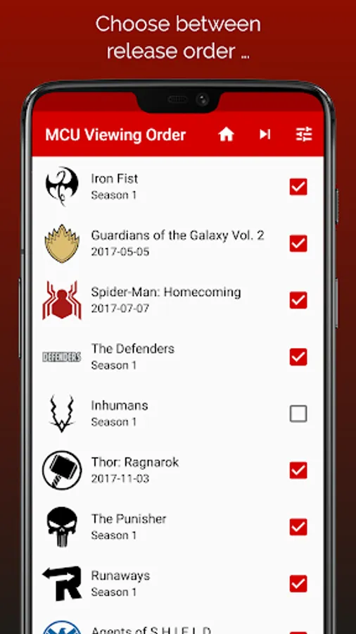 Agents of S.H.I.E.L.D. • Agent Carter • Daredevil • Jessica Jones • Luke Cage • Iron Fist • The Defenders • The Punisher • Inhumans • Runaways • Cloak & Dagger