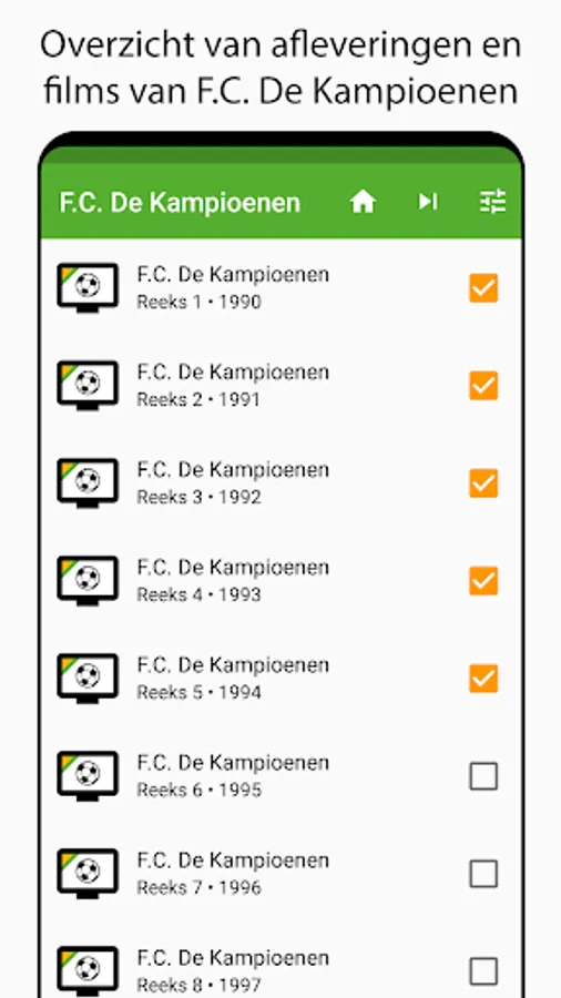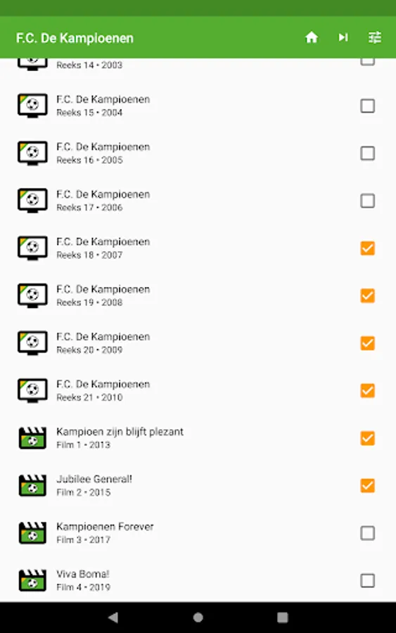 In this app you get an overview of all episodes and films of F.C. The Champions and you can keep track of what you have seen.