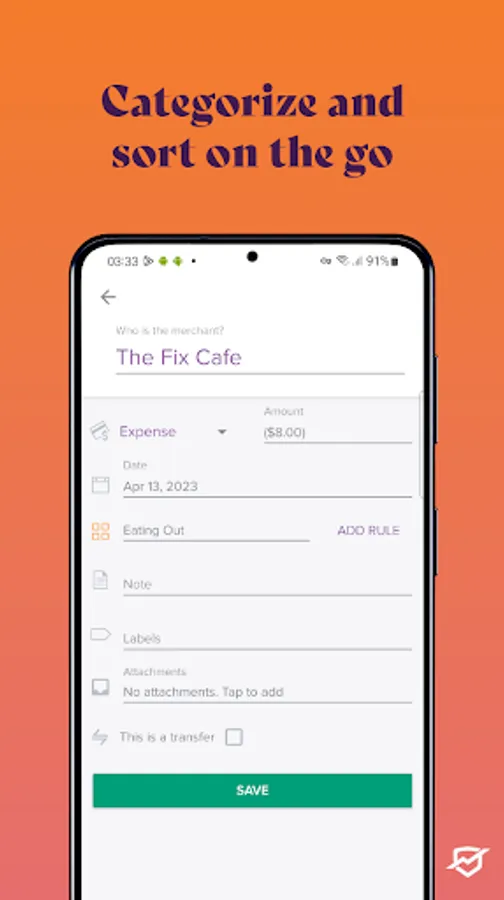 - Categorize your transactions on-the-go