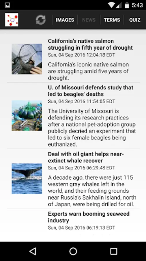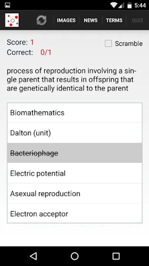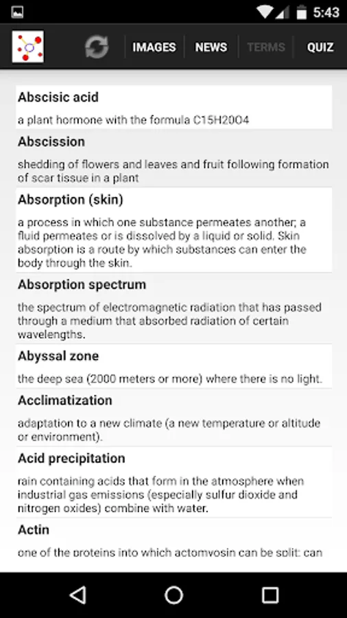 Bio Sage shows the latest biological news and images that define our world. Users can learn new scientific terminology and test their knowledge via a quiz activity with scrambled words to reduce obvious guesses. Children may find the app informative and inspirational.
