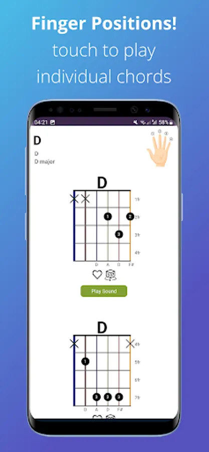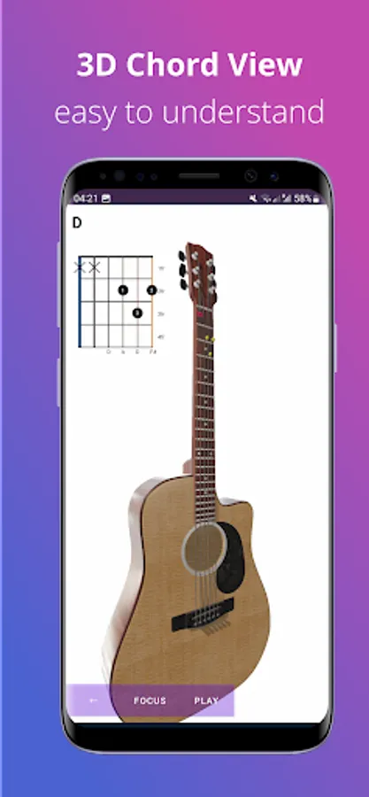 "3000 chords" is the largest chords database you would find in an application. Use this application to memorise the different chord shapes on the guitar. This app helps you to kick-start with learning guitar. The inbuilt chord and ear training games helps you to memorise and identify chords faster.
