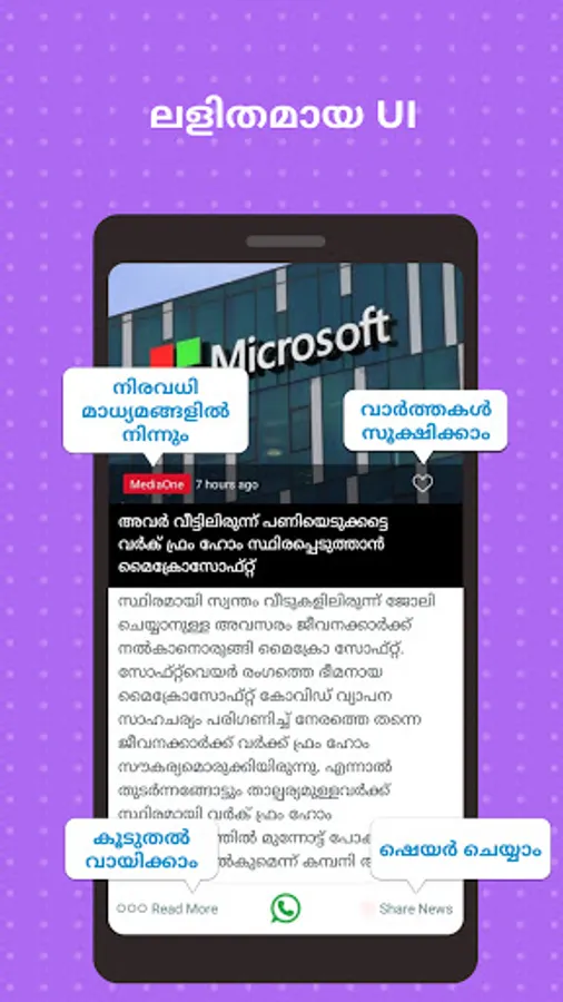 Malayalam daily newspapers is one of the additional feature available in the app. Users can read Malayalam newspapers inside the app without the need of leaving the app!