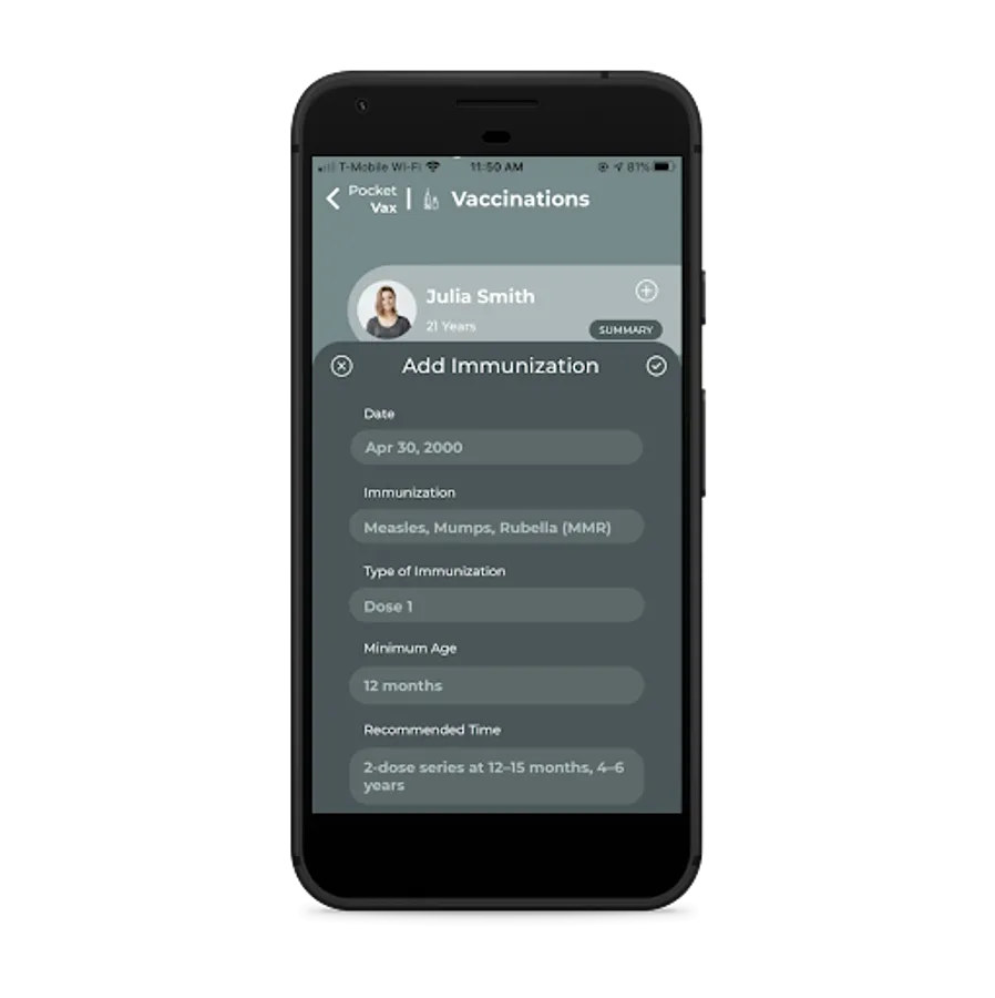 Track child, adolescent, adult and travel vaccinations