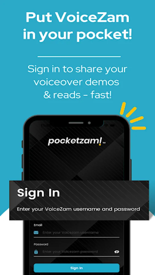 PocketZam is available for active VoiceZam members. Don’t have a VoiceZam account yet? No worries - voice actors can quickly sign up for a free trial at www.voicezam.com.
