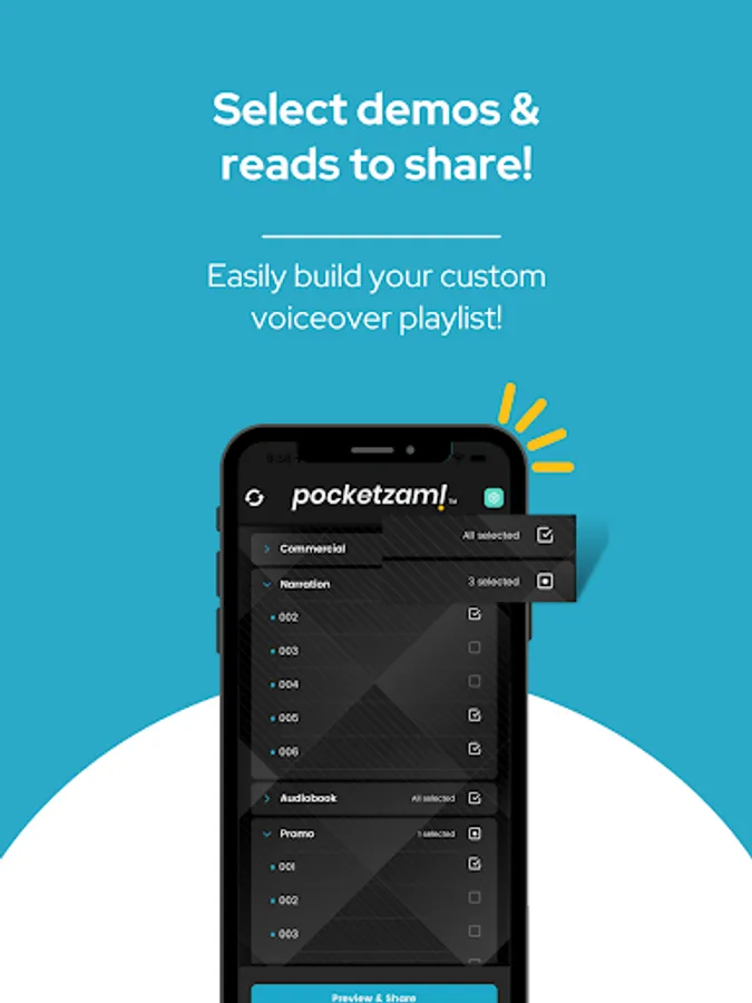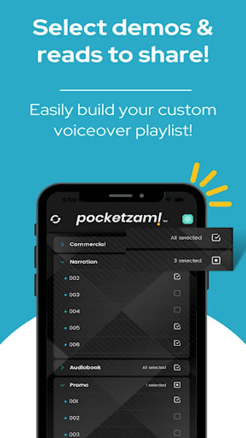 We made it fast and super simple for our VoiceZam family to share customized voiceover demo & read playlists with PocketZam!