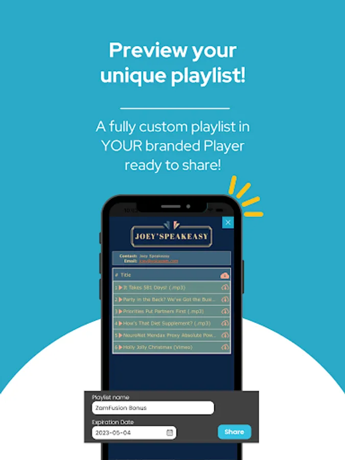 Zamfusion users get extra PocketZam bonus features! You can name your playlist, customize your expiration date, and the best part - you can even include “offline” reads and demos!
